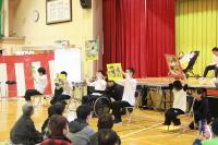 職場・施設体験の報告、歌に演奏、地元の祭りの紹介など盛りだくさんでした。発表前の物の準備も生徒たちが行いました。生徒たちが自分たちで作り上げた舞台でした。