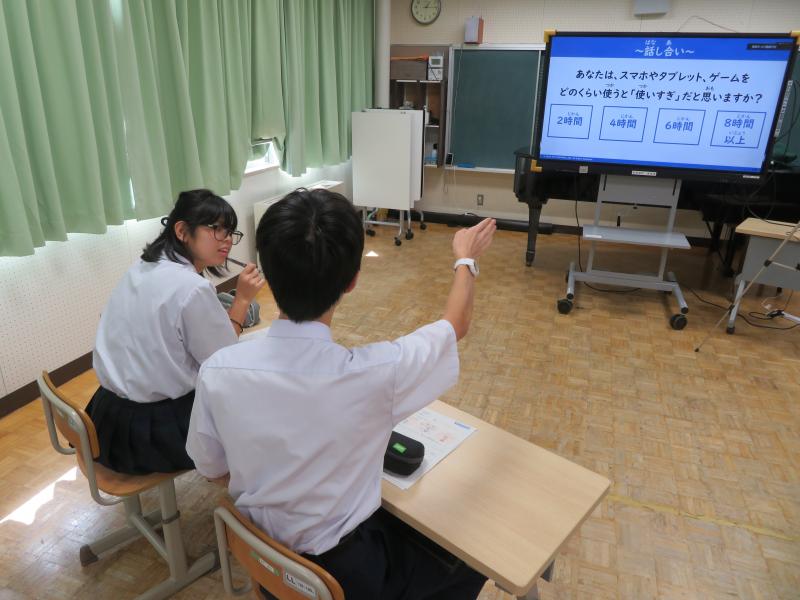 話し合いの時間では、近くの友達とマナーや決まりについて話し合いました!