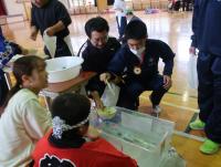 全校放送「体育館で縁日を行います。ぜひ来てください!」