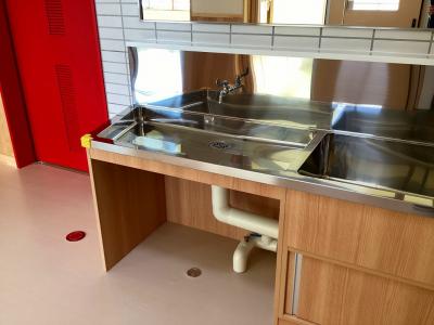 車いすの児童生徒も含めてみんなが使いやすいトイレや手洗い場なども設置されました。